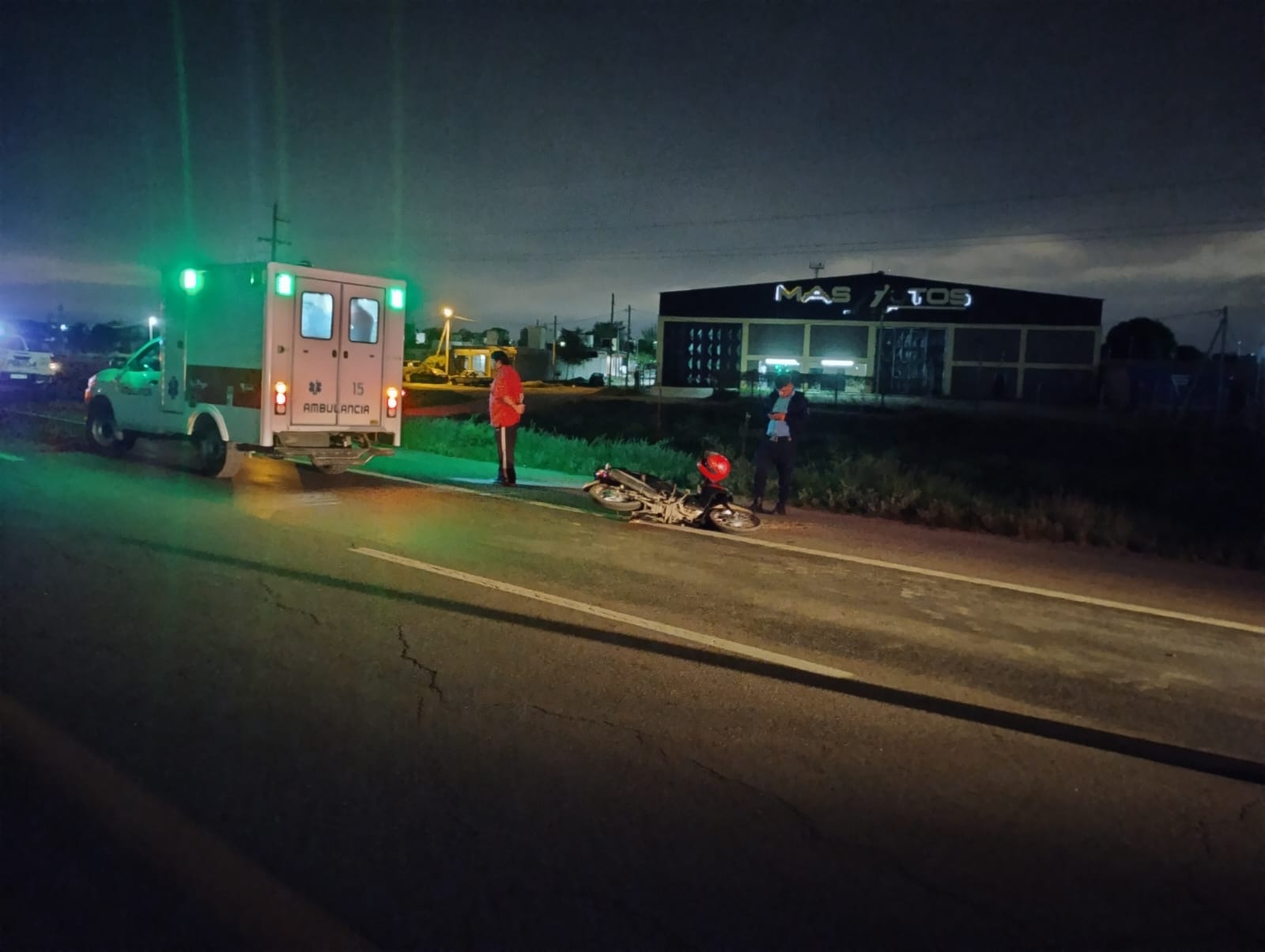 Maira Narváez circulaba en su motocicleta en sentido norte a sur por Ruta n°38 y calle Agüero Vera y colisionó con un can. Producto del choque sufrió traumatismo de tórax y su pie derecho quedó atrapado en la cadena del rodado por lo que en los primeros auxilios se logró la extracción del mismo y quedó inmovilizado hasta la llegada de los facultativos.