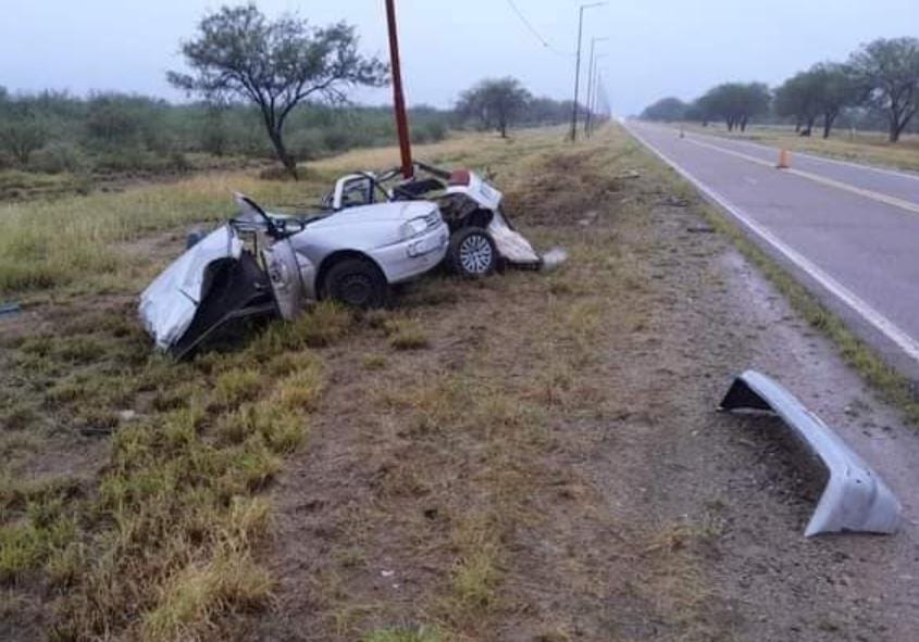 De acuerdo al informe policial, por razones que se tratan de establecer el automóvil habría salido a la banquina y al encontrarse la cinta asfáltica en mal estado por el temporal, comenzó a derrapar, el mismo terminó impactando contra un poste de luz del alumbrado público.