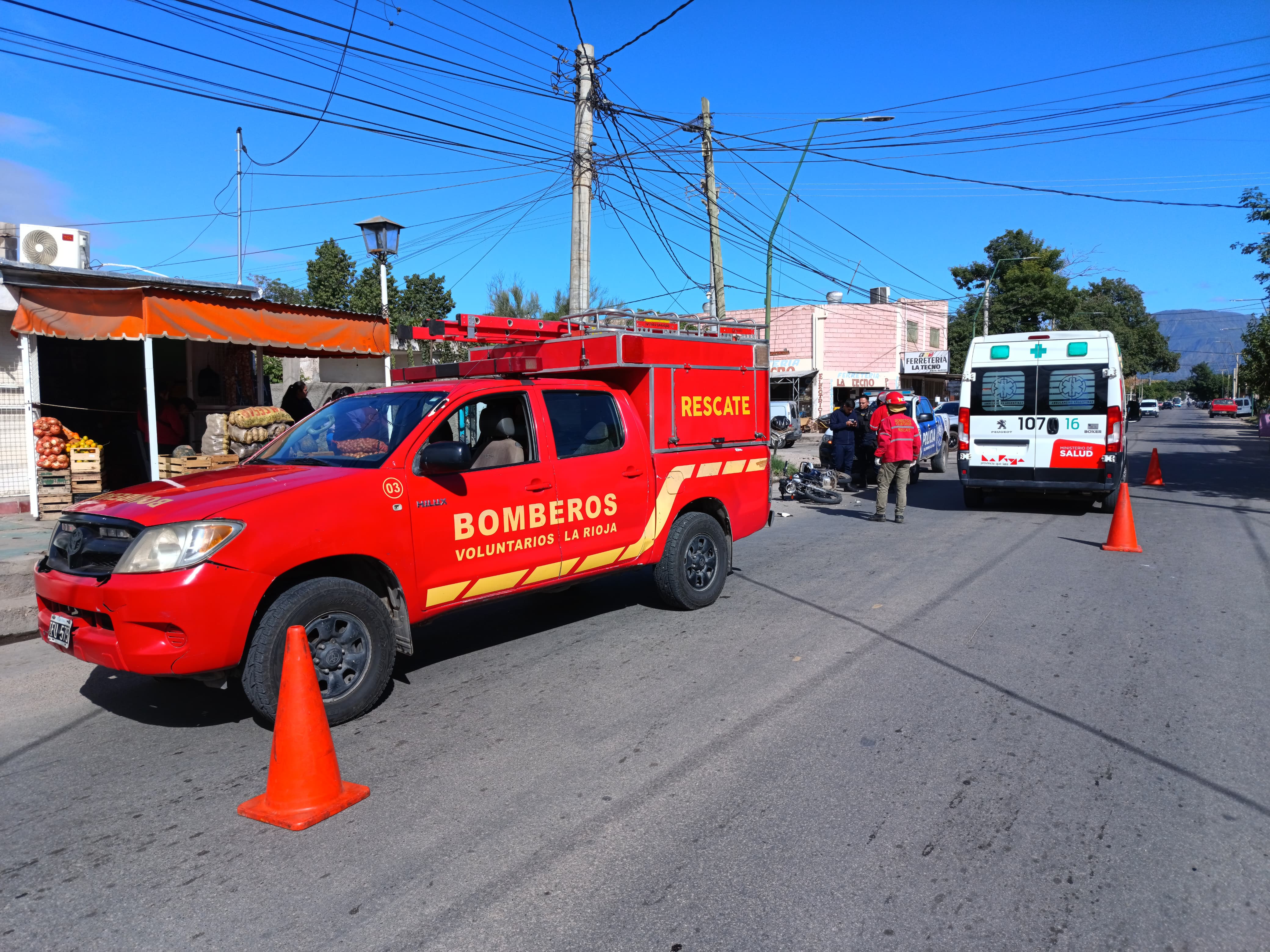 El siniestro vial ocurrió este viernes a las 11.30 en avenida San Nicolás de Bari y calle Villa Castelli sur de la Capital riojana. Una motocicleta Yamaha YBR 125cc, color negro, al mando de Guillermo Soria (29) colisionó con una camioneta Ford Ranger conducida por Muriel Quiroga. Tras el impacto de los rodados, Soria presentó traumatismo de cráneo y escoriaciones leves. Mientras que Quiroga resultó ilesa.
