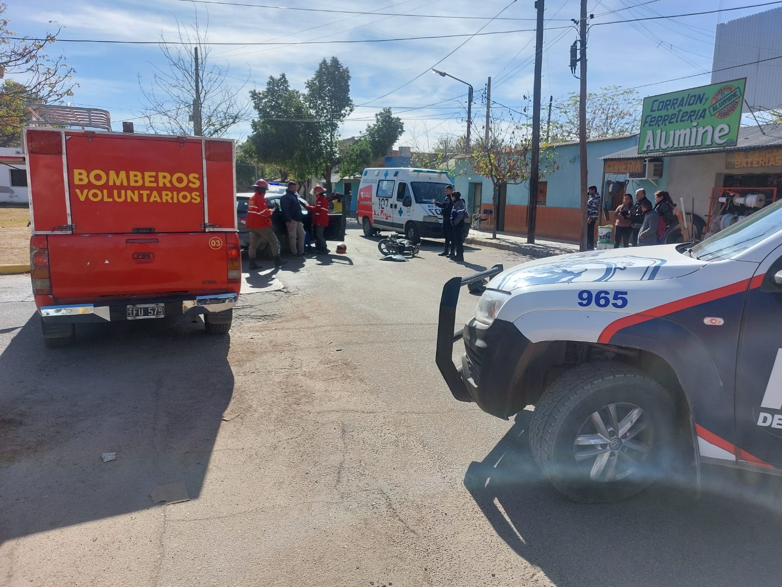Este jueves, pasado el mediodía, una motocicleta Yamaha Crypton 110, conducida por María Carrizo (36) quien estaba acompañada de una menor, impactó con un automóvil Renaull Sandero, guiado por Patricia Neyra (52). El siniestro ocurrió en calle Dardo Rocha y Chacho Peñaloza del barrio Cementerio de la ciudad de La Rioja.