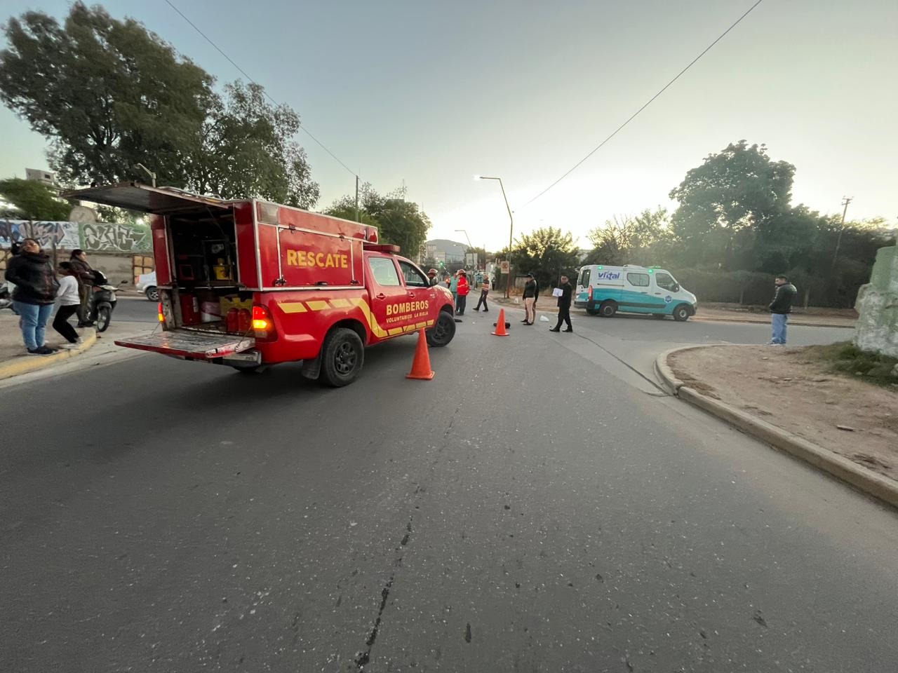 Bomberos Voluntarios de la Ciudad de La Rioja, procedió a realizar la contención de la joven, hasta la llegada del DEM 107 quien la derivó al nosocomio local, Trabajó también, personal policial.