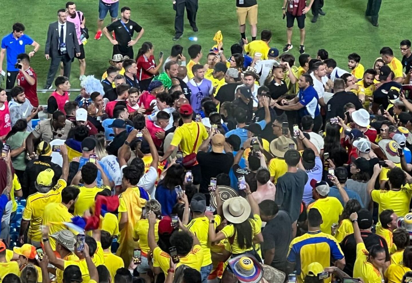 Por su parte, José María Giménez, defensor de la “Celeste”, declaró tras lo ocurrido que había un sector de la hinchada colombiana que había hecho una avalancha sobre su familia, lo que los llevó a intervenir en la situación.