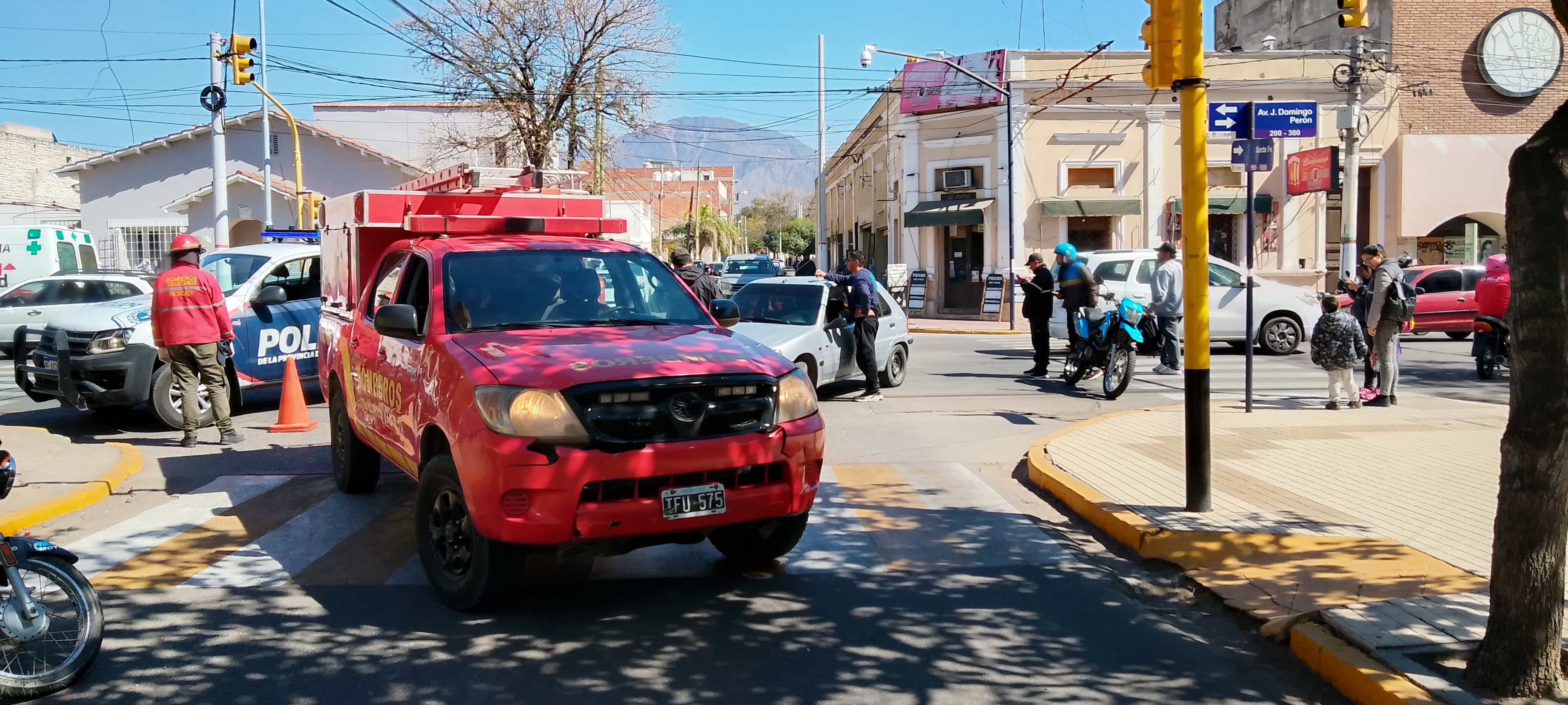 El hecho vial ocurrió este lunes pasado el mediodía por calle Santa Fe y avenida Juan Domingo Perón del barrio Centro de la ciudad Capital. Rocío Espinosa (25) conducía una motocicleta 110, color rojo, e impactó con Antonio Miranda (37) que circulaba en un automóvil Peugeot 209, color gris. Espinosa resultó con traumatismos y escoriaciones.