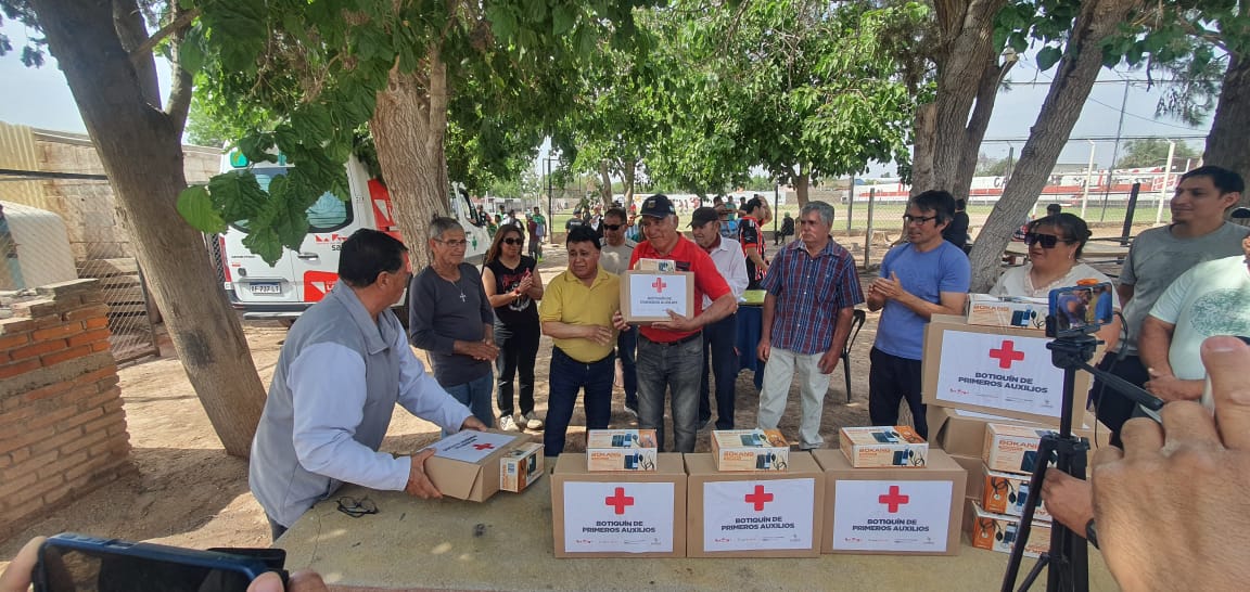 A pedido de su presidente de la Liga Aimogasteña de Fútbol, Ariel Núñez, en las instalaciones del Club Chacarita se hizo entrega de elementos de primeros auxilios y prevención, como así también termómetros y tensiómetros. Durante el evento, el diputado Reinoso valoró el gesto y la gestión del ministro de Salud, Juan Carlos Vergara y de su equipo de colaboradores.