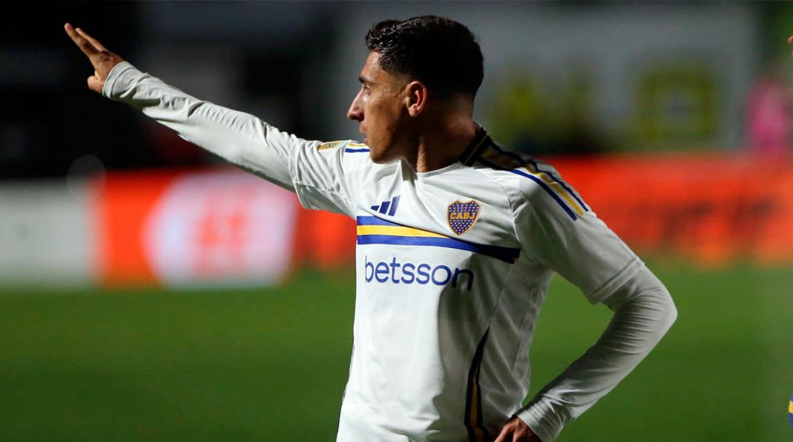 El "Xeneize" aprovechó su momento, Cavani aguantó una pelota perfecta ante Roncaglia, que había rechazado mal y Merentiel capturó el rebote para definir el 1-0 al palo más lejano del arquero Acosta.