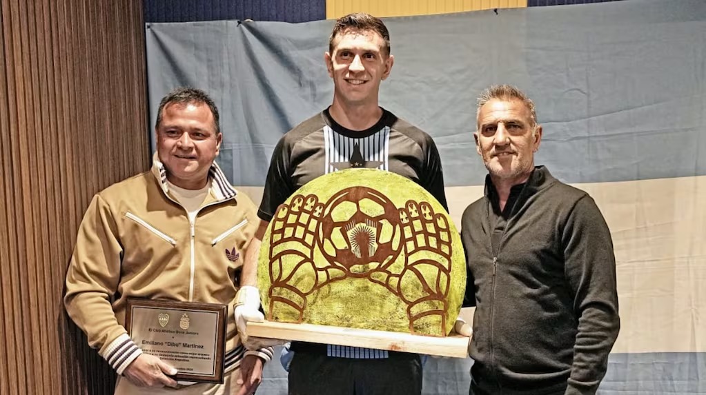 La dirigencia del Xeneize, representada por Marcelo Delgado y Raúl Cascini, entregó al arquero una plaqueta conmemorativa y una obra del artista argentino Alejandro Marmo titulada “Las manos iluminadas”. Este homenaje se suma al que el Dibu recibió en 2023 en el mismo estadio, cuando fue distinguido por haber ganado el Trofeo Lev Yashin al mejor arquero del mundo otorgado por la revista “France Football”.