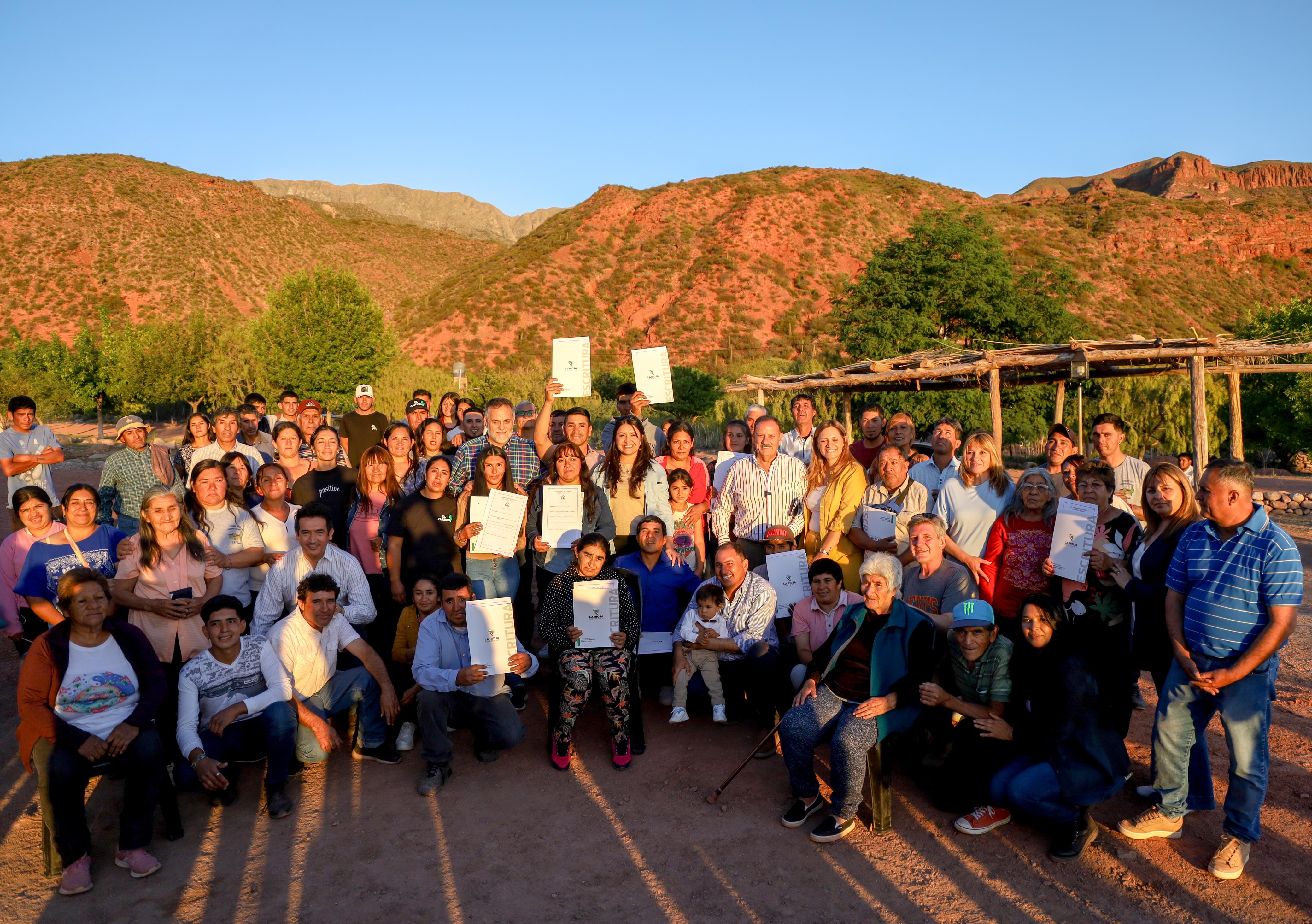 El gobernador Ricardo Quintela entregó este martes 60 escrituras a poseedores, productores y agricultores de la localidad de El Cardón, en el departamento General Felipe Varela.