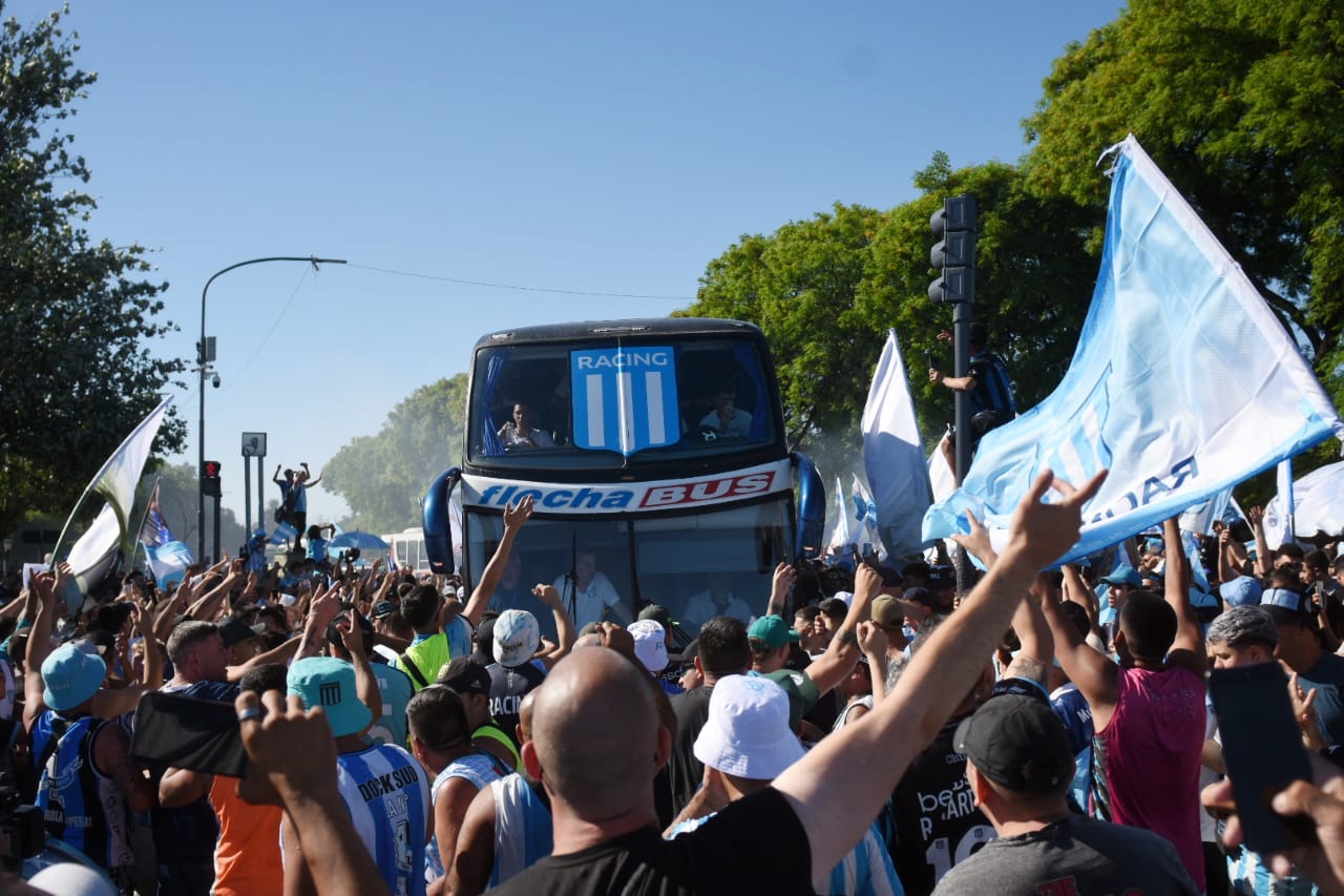 La despedida comenzó en el Hotel Savoy, donde los jugadores suelen concentrar. Cientos de fanáticos se reunieron para alentar al equipo mientras abordaba el micro que los llevaría a Aeroparque. Minutos más tarde, el aeropuerto se convirtió en una fiesta albiceleste, con humo, bombos y la pasión característica de la hinchada de Racing.
