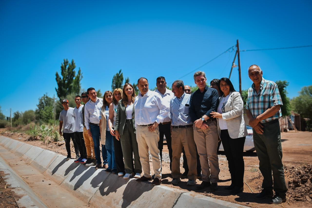 En la jornada de este lunes, el gobernador Ricardo Quintela visitó la localidad de Los Palacios, Departamento Coronel Felipe Varela, donde se proyecta la reparación y mantenimiento en su totalidad de la traza del canal matriz de riego que se ubica en el departamento, lo que significaría incrementar la eficiencia en la conducción y distribución del recurso hídrico.