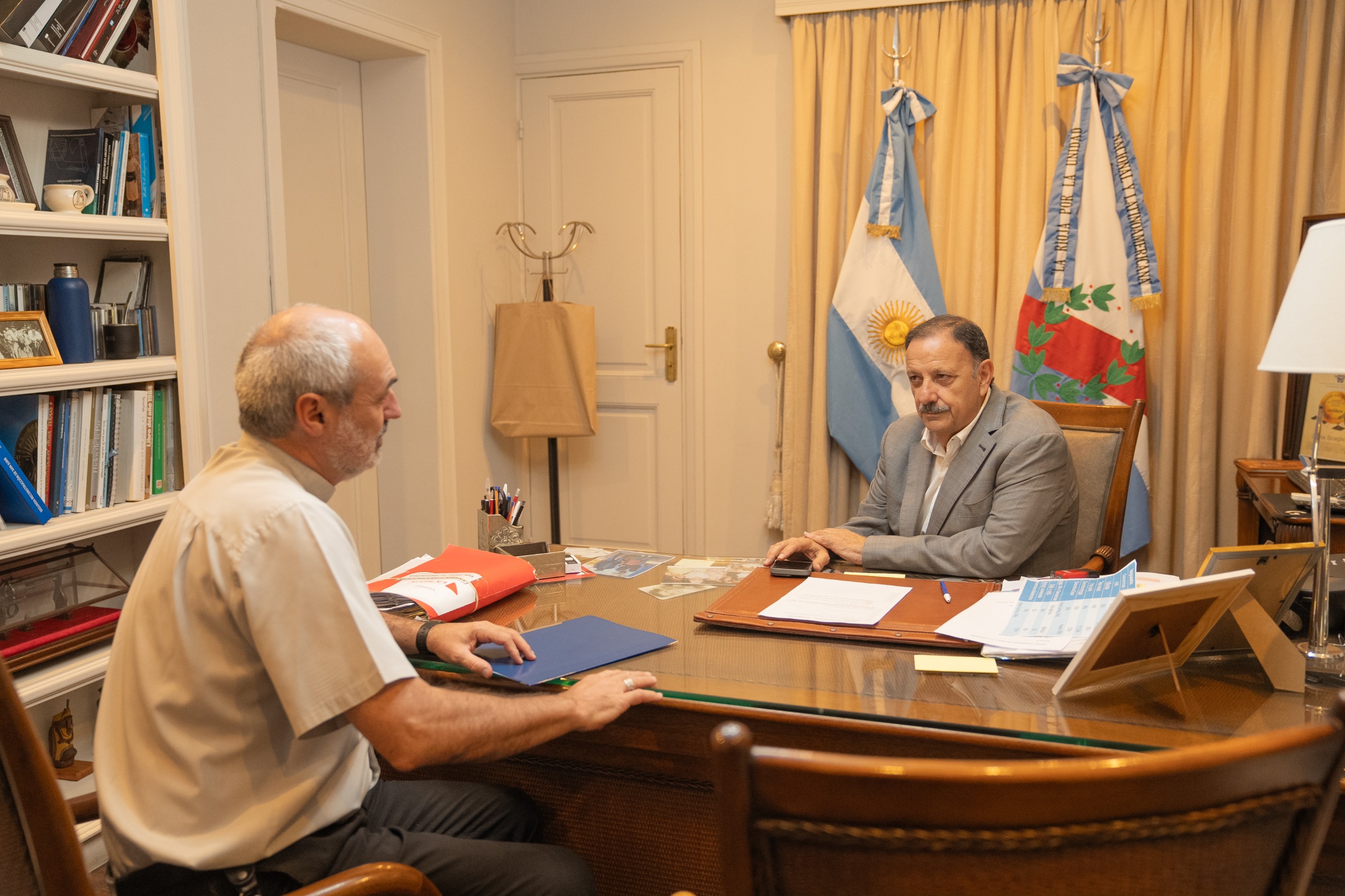 En la jornada de este martes, el gobernador Ricardo Quintela, recibió en Residencia Oficial, al obispo Dante Braida, recientemente designado como nuevo titular de Pastoral Social en la pasada Asamblea Plenaria en la Provincia de Buenos Aires. En la oportunidad, Quintela manifestó su apoyo y colaboración en las nuevas responsabilidades del obispo.