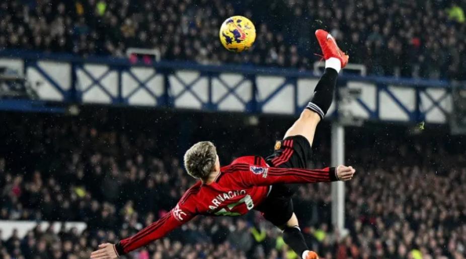 Garnacho provocó sorpresas en el estadio Goodison Park del Everton cuando abrió el marcador para el Manchester United con un estilo asombroso en el enfrentamiento de la Premier League inglesa. Un centro elevado de Diogo Dalot quedó ligeramente detrás del argentino, pero este se lanzó al aire y envió una impresionante patada desde arriba que se disparó hacia la portería de Jordan Pickford.