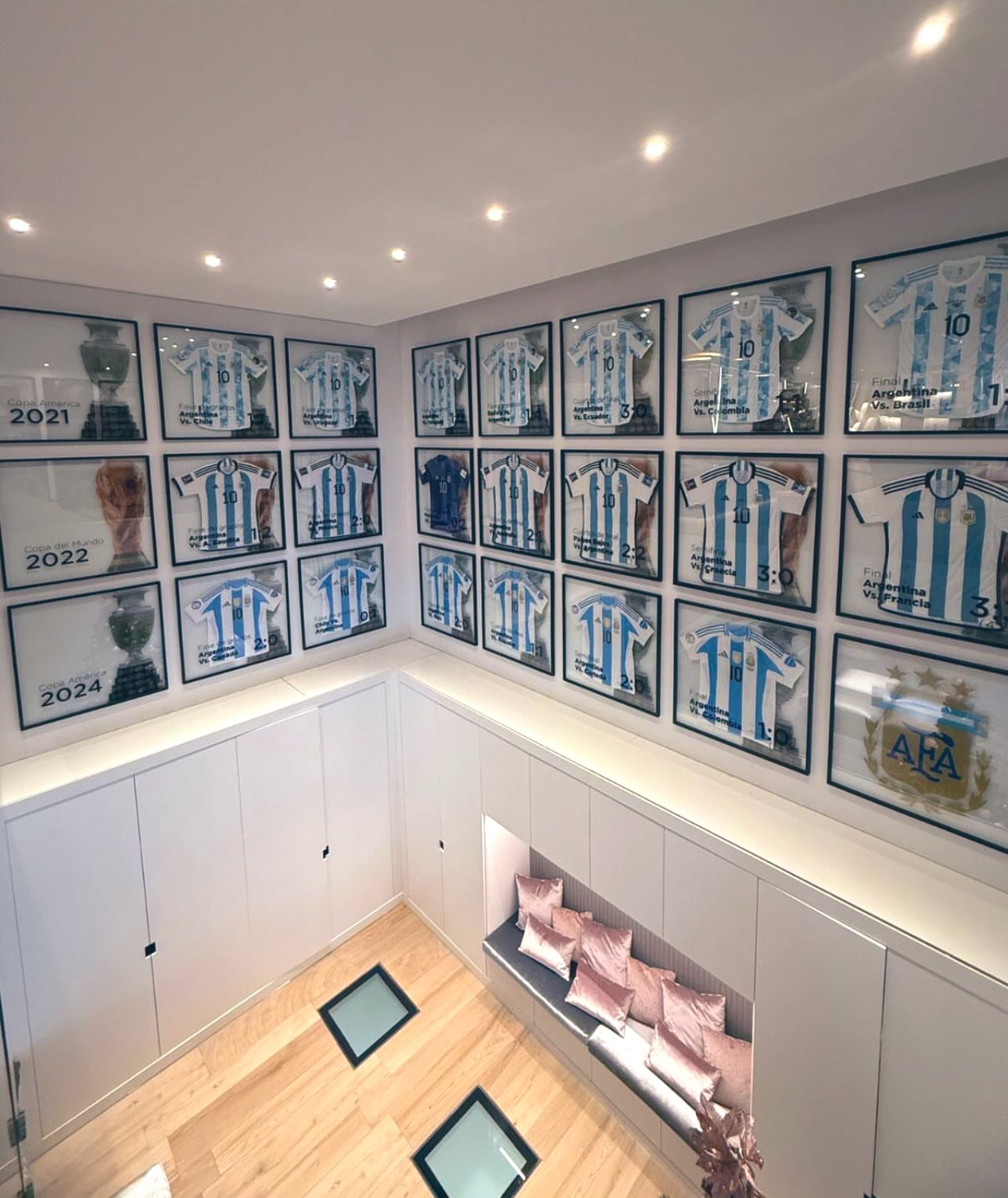 El campeón del mundo compartió con sus millones de seguidores un lugar desconocido de su intimidad hogareña. Se trata de un museo de un valor incalculable: nada más y nada menos que con todas las camisetas de la selección argentina que usó en los partidos de la Copa América 2021, el Mundial de Qatar 2022 y la Copa América 2024, enmarcadas y ubicadas en la pared. Además, cada una indica en qué fechas fueron usadas.