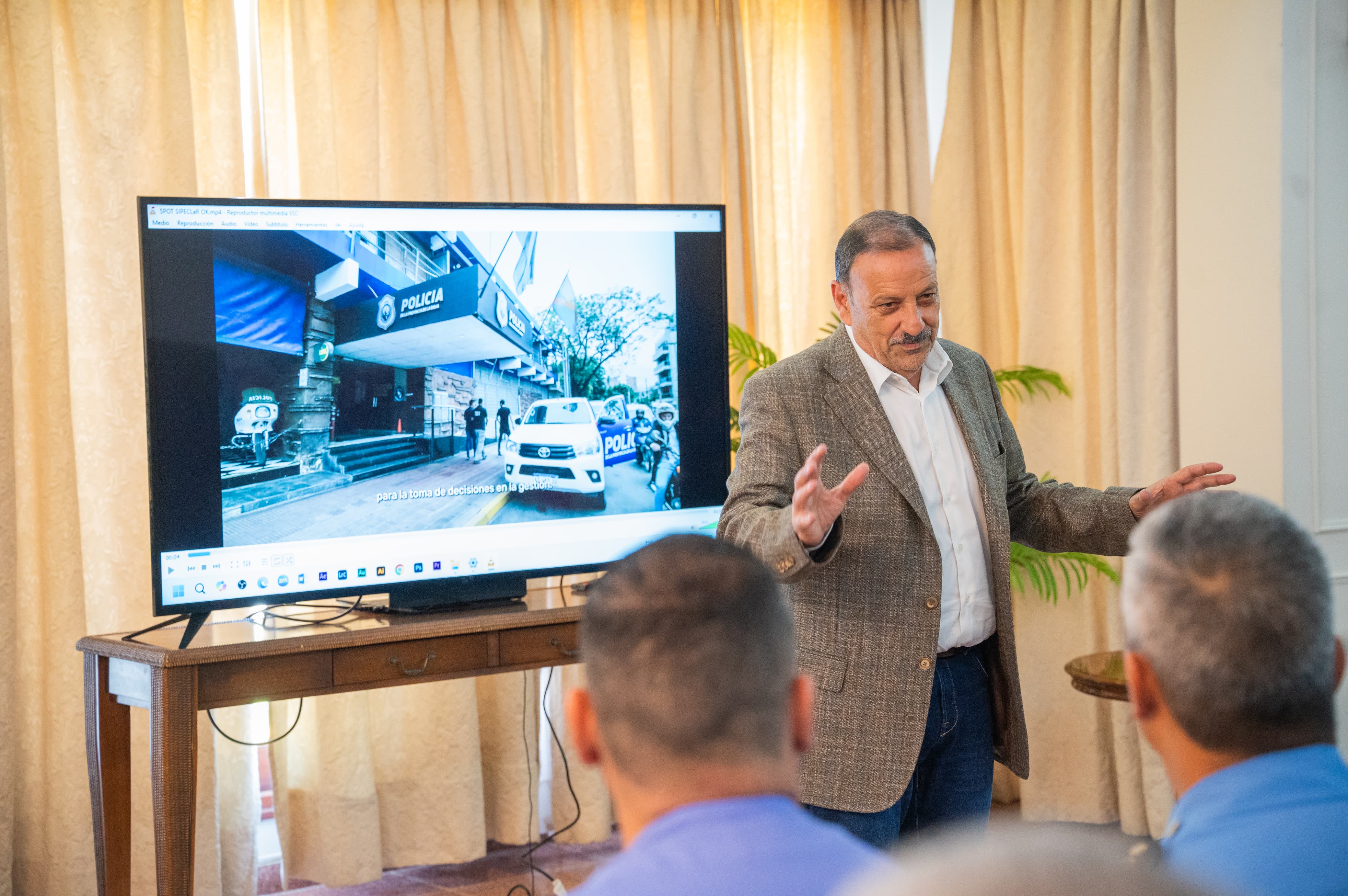 El gobernador Ricardo Quintela, junto al ministro de Seguridad, Justicia y Derechos Humanos Miguel Zárate e integrantes de la Plana Mayor de la Policía de la provincia realizaron la presentación del Plan de Informatización y Digitalización de la Informatización Policial, que tiene como objetivo centralizar la recolección de la información de toda provincia y, a partir de ella, generar evidencia que apoyen la toma de decisiones por parte de las autoridades.
