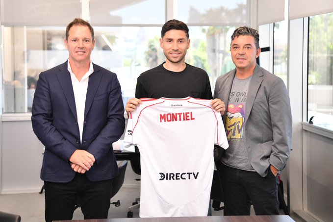 En la tarde de este lunes, las redes sociales de River, hicieron realidad la expectativa de muchos fanáticos. “Junto al Presidente @JorgeBrito y al director técnico, Marcelo Gallardo, Gonzalo Montiel firmó su contrato y selló su vuelta a casa” publicaron con la foto que sella la incorporación del jugador.