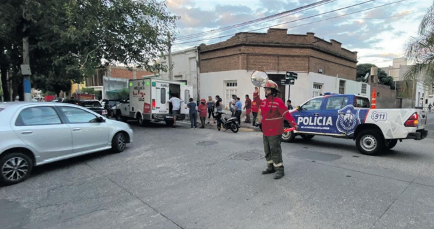 Mediante notificación de Bomberos Voluntarios Ciudad de La Rioja, se alertó de un siniestro ocurrido en la intersección de las calles Corrientes y Adolfo Dávila, el cual involucró a tres personas.