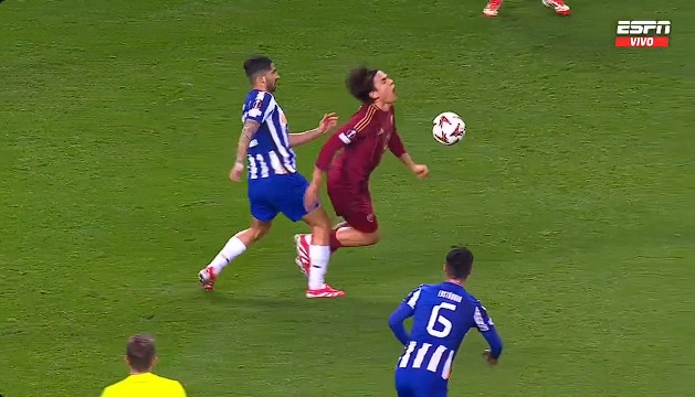 El mediocampista de Porto llegó tarde y le cometió una dura infracción a la figura de Roma.