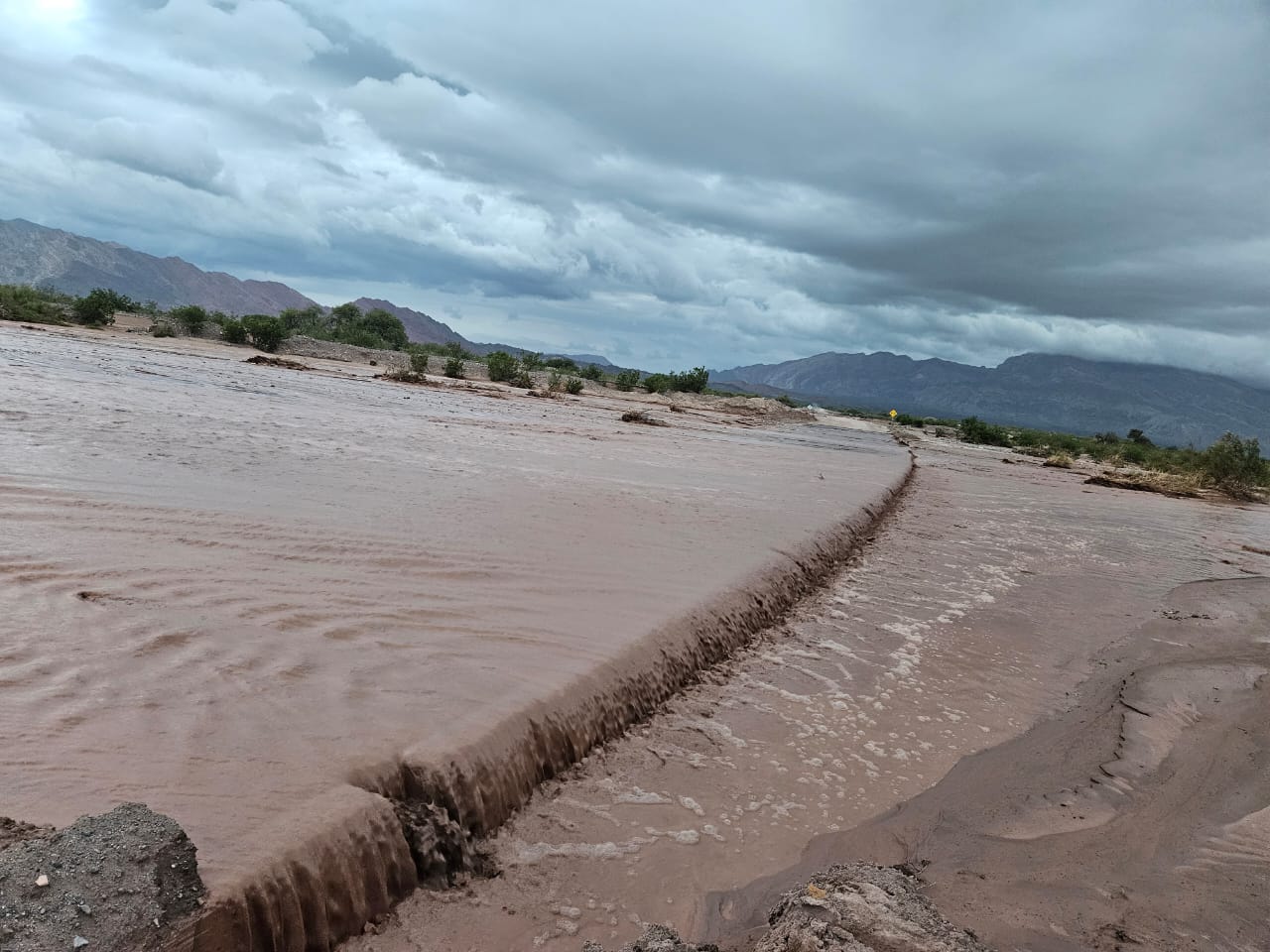 Desde el COE indican, también, que el tramo Santa Clara, Provincia de San Juan, por RN N° 40 se encuentra cortado por crecida de badenes y ríos, se recomienda precaución al circular por la zona.
