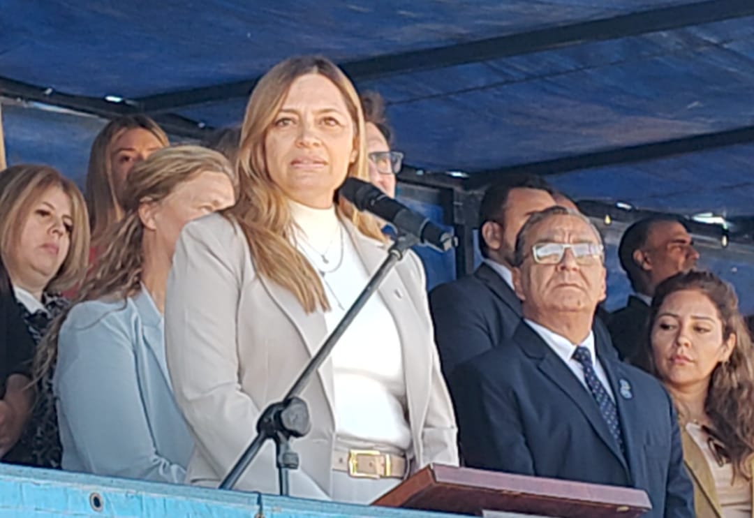 La vicegobernadora llamó a la reflexión y dijo que “La Argentina hoy, a través de un Gobierno nacional que nuevamente decide arrodillarse ante un imperio extranjero y adquirir una deuda que tendrán que pagar las nuevas generaciones, pero así como hay un Gobierno nacional que no honra a nuestra soberanía y quiero decirles que hay esperanzas porque aquí hoy como en toda la Argentina, hombres y mujeres están honrando a las Malvinas, a la soberanía y al mandato de la gente”.
