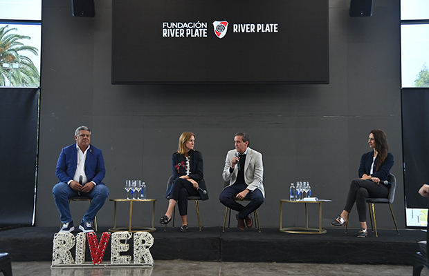 El encuentro estuvo conducido por Julieta Pink y tuve tres paneles. El primero contó con la participación de referentes que compartieron su visión y experiencia en la construcción de un deporte más inclusivo: Mónica Santino (integrante de La Nuestra Futbol Feminista), Nicolás Ricci (capitán del equipo de natación adaptada de River) y Belén Bianchi (coordinadora de fortalecimiento de clubes de Fundación River Plate).