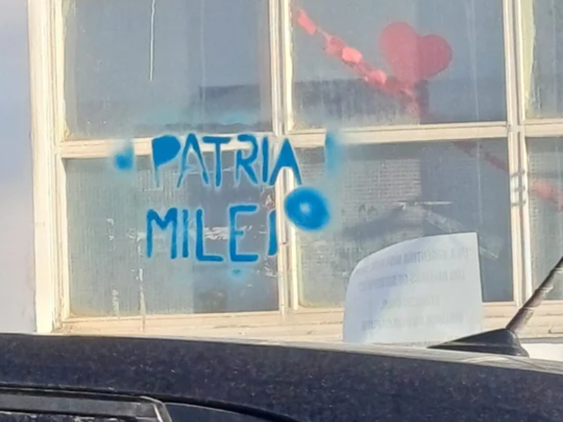 Por otra parte, las pintadas también hicieron referencia a las supuestas coimas que habría recibido la secretaria de Presidencia y hermana del presidente, Karina Milei, desde la Agencia Nacional de Discapacidad (ANDIS): “Alta coimera - 3%”, se lee en las paredes.