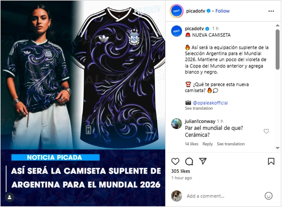 El sitio web Opaleak difundió el que sería el nuevo modelo de la camiseta suplente de la Selección argentina, el cuál generó críticas negativas por parte de los hinchas cuando fue publicado en las redes sociales.