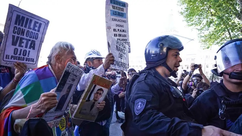 Efectivos de seguridad avanzaron con escudos y gases lacrímogenos sobre los jubilados que se habían concentrado en los alrededores del Congreso como cada miércoles para repudiar las medidas de ajuste del presidente Javier Milei. Al menos un jubilado fue detenido mientras los policías se hacían paso tirando directamente a las caras de los manifestantes.