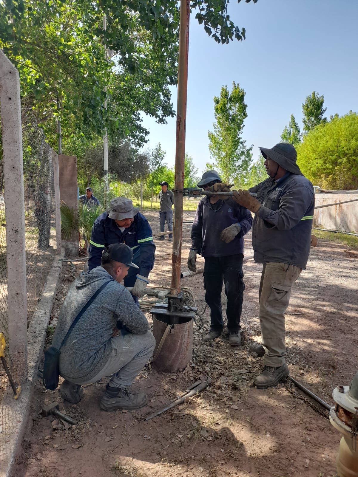 En la localidad de Santa Clara se realizaron tareas de cambio de bomba sumergible, empalmes, reparación de cañerías y mantenimiento del tablero eléctrico, asegurando la continuidad del servicio en la zona.