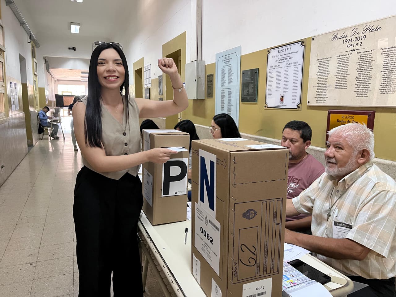 La joven candidata a diputada provincial del Frente de Izquierda y de los Trabajadores Unidad (FIT-U), María José González, sufragó en la EPET N° 2 de la ciudad Capital..