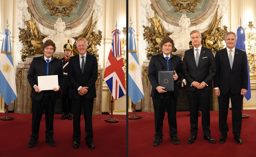 En la misma oportunidad y acompañado por el canciller Pablo Quirno, Milei hizo lo propio además con los representantes diplomáticos de la Unión Europea, Reino Unido, Bélgica, Austria y Suiza. Luego, el Presidente mantuvo la audiencia con Lamelas en su despacho.
