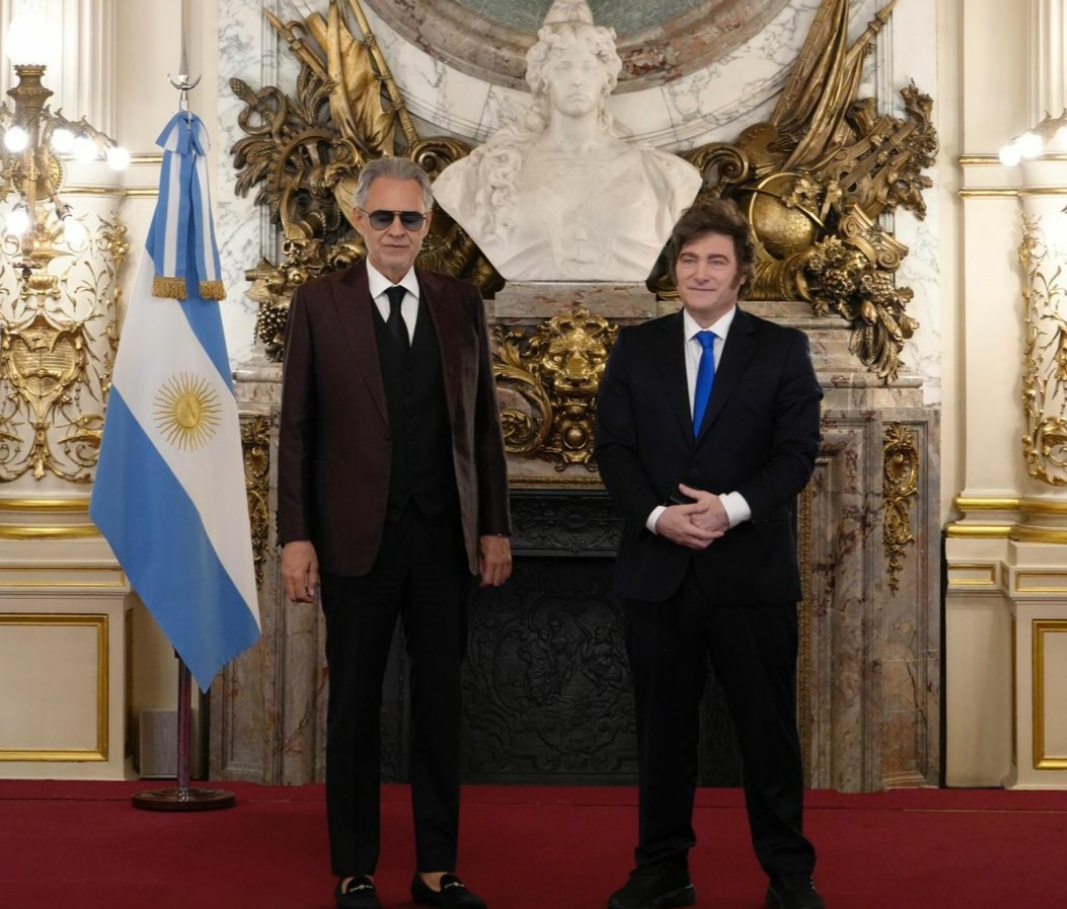 El mandatario otorgó este mediodía la Condecoración de la Orden de Mayo al Mérito en el grado de Comendador al cantante Andrea Bocelli.
