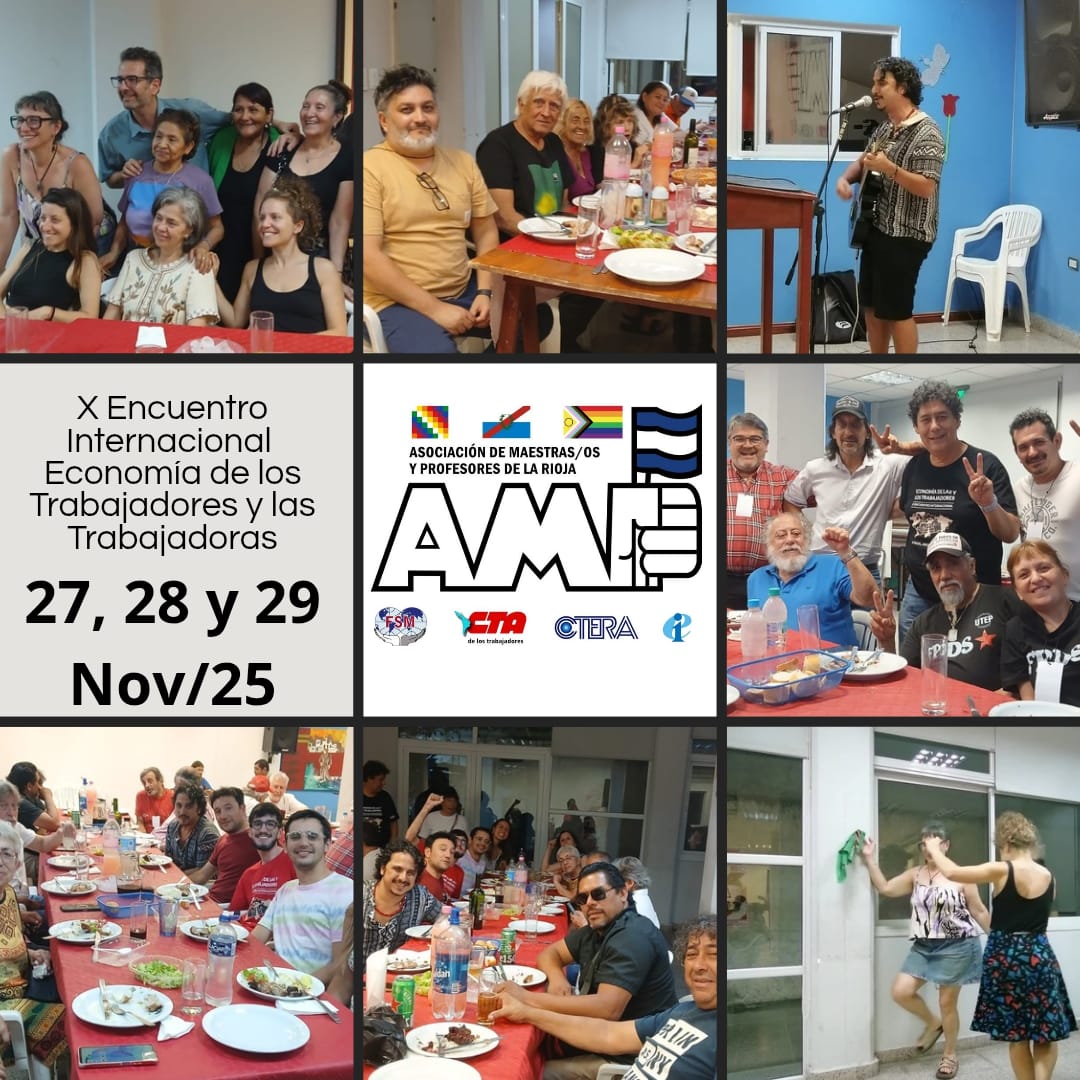 En el marco del X Encuentro Internacional Economía de los Trabajadores y las Trabajadoras que se lleva a cabo en La Rioja del 27 al 29 de noviembre, desde la Asociación de Maestros y Profesores agradecieron a quienes defienden con amor la soberanía y el pueblo. En tanto manifestaron un especial agradecimiento al presidente de Copregraf, Julio Delgado, por su aporte a la lucha colectiva; del mismo modo lo hicieron con las delegaciones nacionales e internacionales que se dieron cita en este evento.
