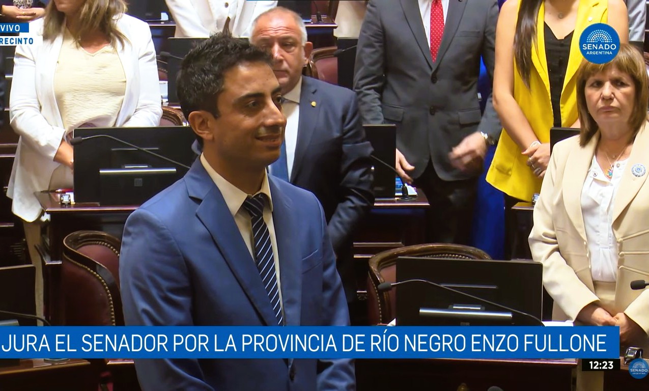 El rionegrino libertario Enzo Fullone juró hoy como senador en lugar de Lorena Villarverde, quien no pudo asumir ya que no se aprobó su pliego debido a las causas que tuvo en Estados Unidos y por los supuestos vínculos con el empresario acusado de narcotráfico, Fred Machado.