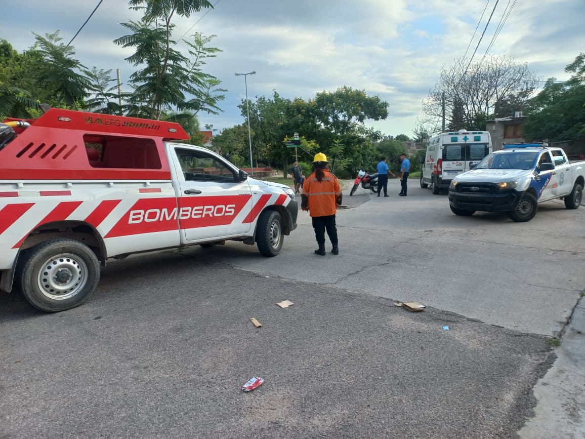Bomberos Voluntarios Águilas de Acero trabajó en los primeros auxilios, personal policial, hasta la llegada del DEM 107 quien determinó el traslado de la joven al hospital Vera Barros.
