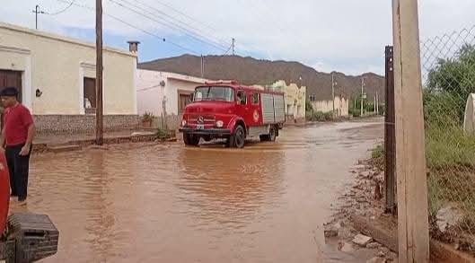 En el lugar trabajan Bomberos Voluntarios de Aimogasta y de la Ciudad de La Rioja, coordinando acciones para brindar respuesta inmediata y mitigar los efectos del anegamiento.