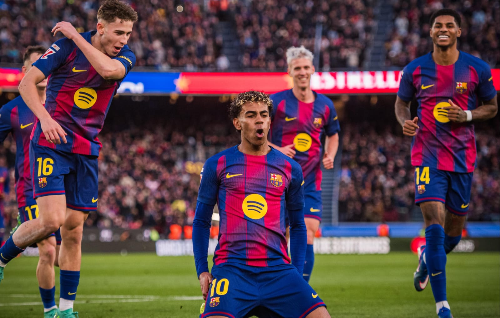A los 16 minutos del segundo tiempo, Lamine Yamal apareció por el sector ofensivo, encaró con decisión y definió con calidad para establecer el 2-0, desatando el festejo en el Camp Nou.