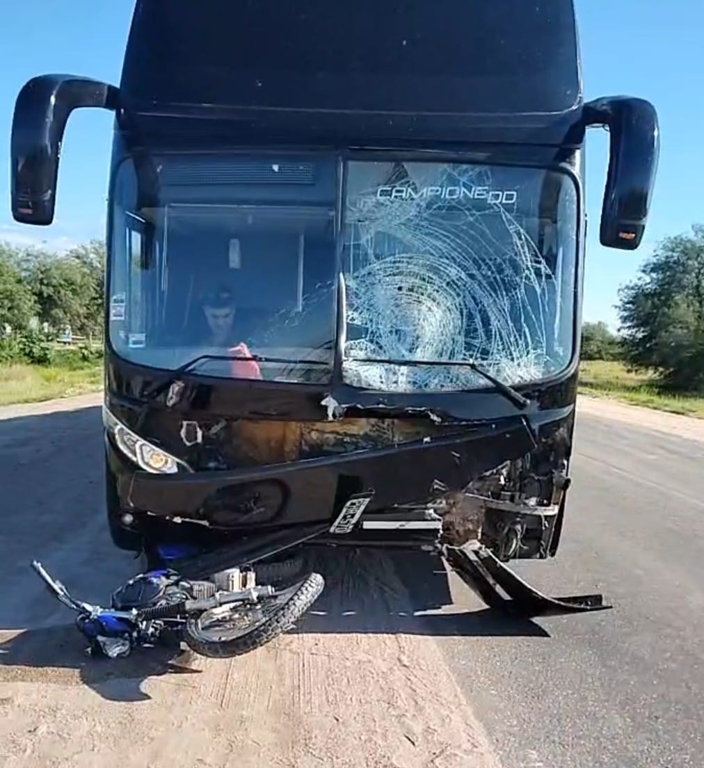 El siniestro vial sucedió en la mañana de este domingo sobre Ruta N° 38 de la ciudad de La Rioja. Un motociclista que, aún no se suministraron datos personales, que conducía una motocicleta XTZ 125cc, color azul, chocó con un colectivo de gran porte que no posee marca de la empresa visible.