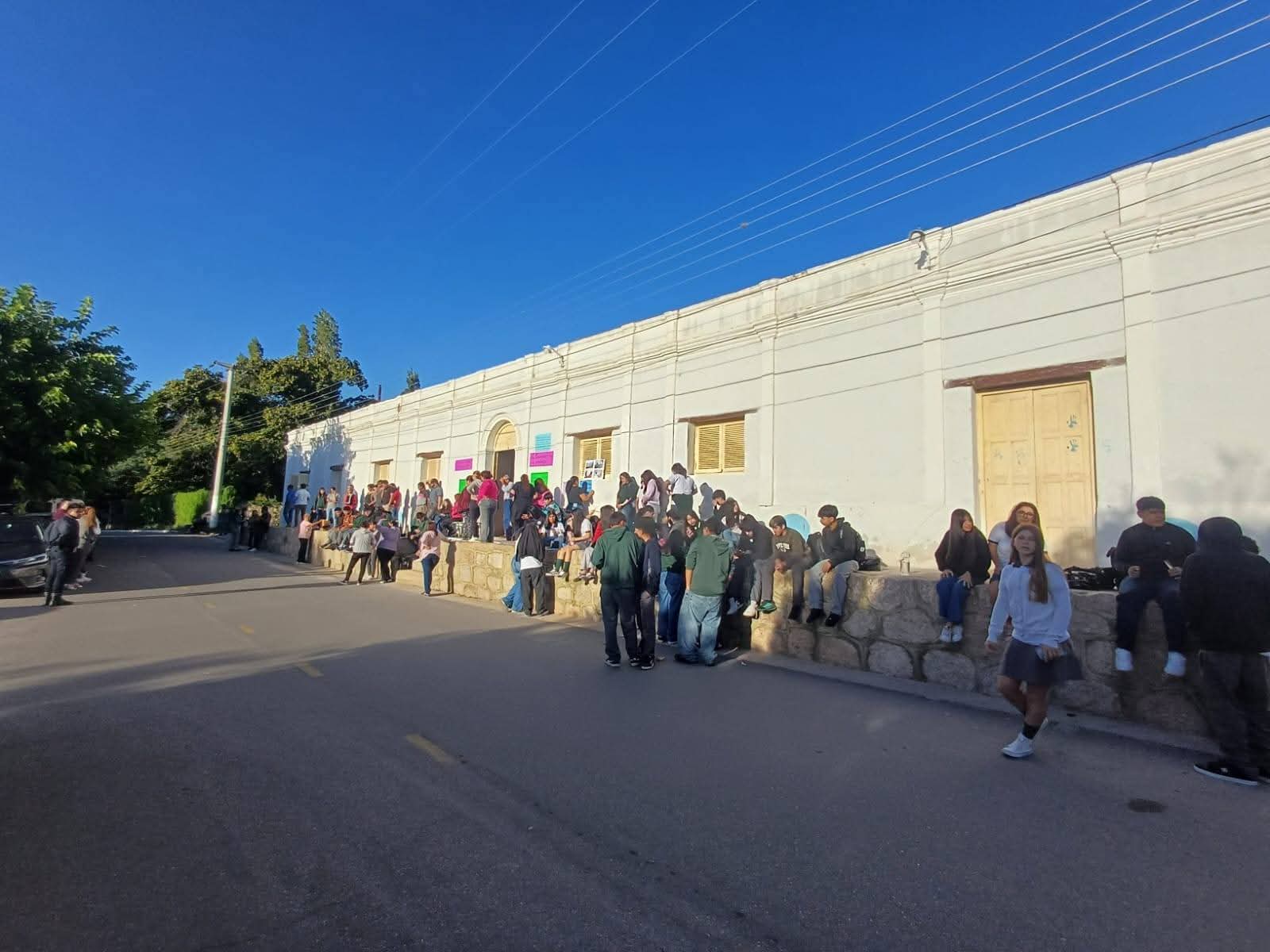Alumnos y padres protestan este miércoles en el Colegio Provincial de Anjullón manifestando su preocupación y malestar por las condiciones en las que se encuentra el establecimiento educativo.