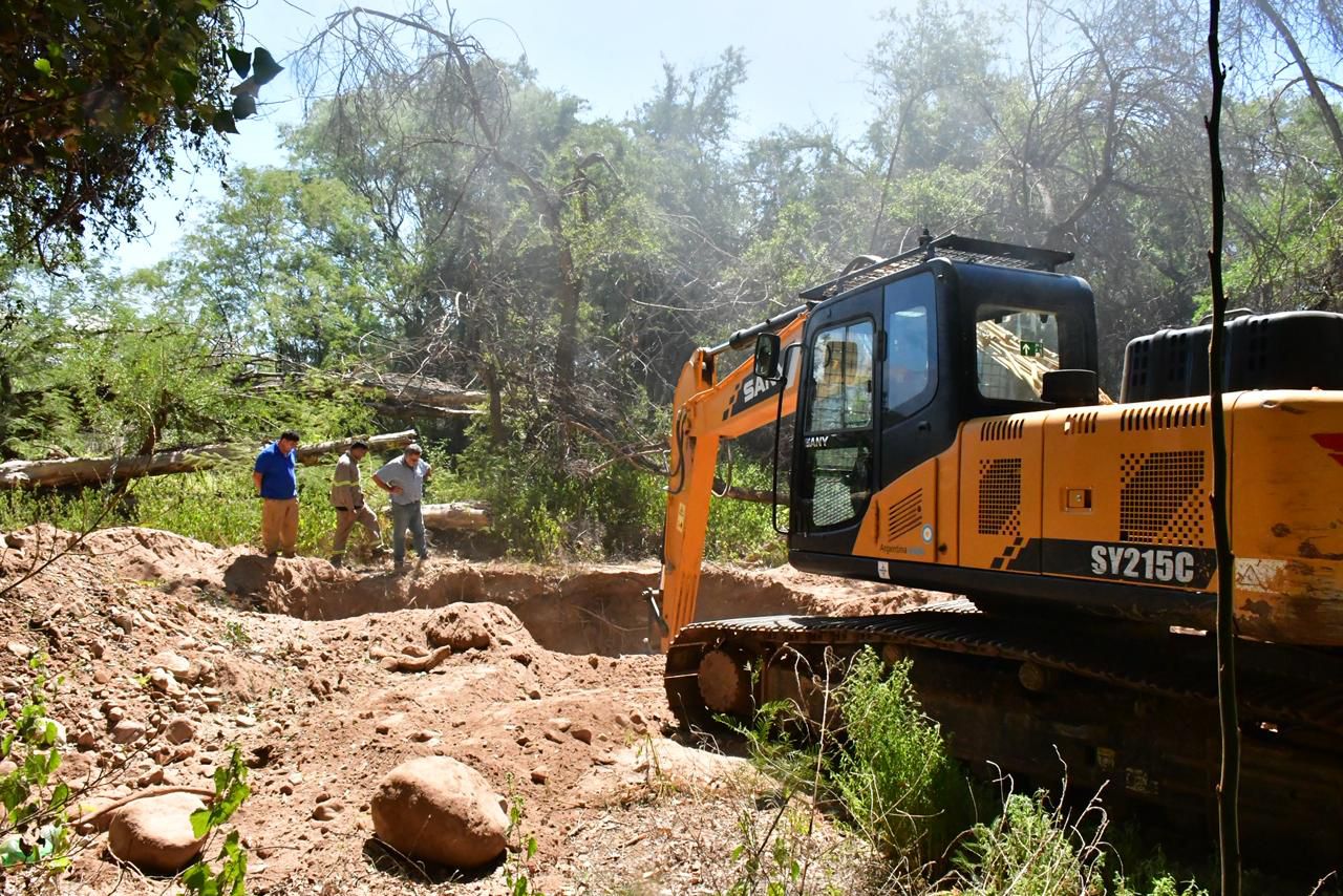 La intervención se desarrolla en la zona de El Bosquecillo, donde se iniciaron tareas de reacondicionamiento y puesta en valor de un pozo estratégico que permitirá reforzar el sistema de abastecimiento, actualmente exigido al máximo debido al agotamiento natural de las fuentes y a la escasez de precipitaciones.