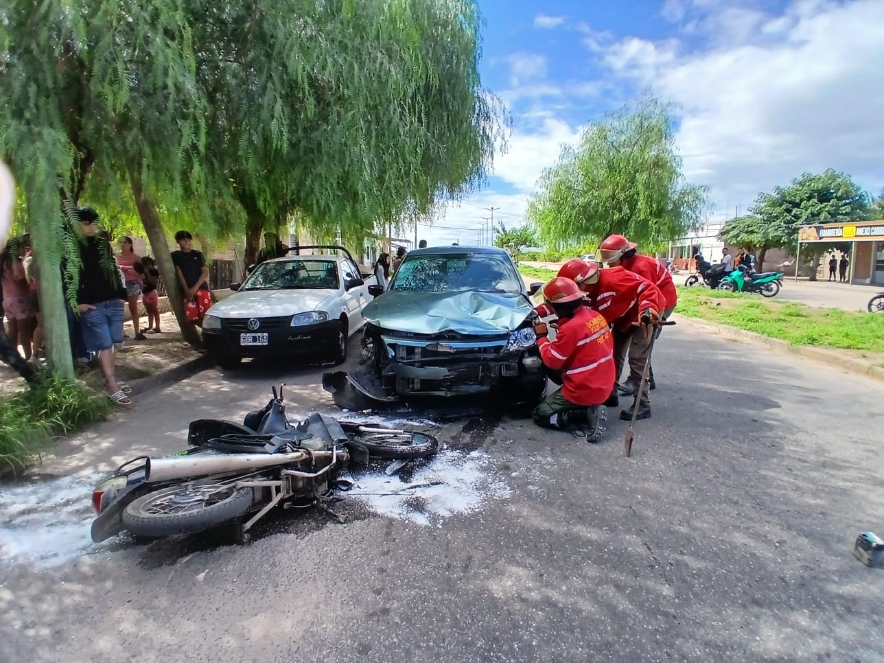 El siniestro se produjo este lunes a las 14:50 por avenida Av. René Favaloro y Tomás Ortiz, protagonizado por un automovil Volkswagen Voyage color verde al mando de Francisco Romero de 24 años, quien resultó ileso. Por causas que se desconocen colisiona con una motocicleta Corven color negra al mando de Kevin Fonzalida de 30 años quien presentó fractura expuesta en miembro superior derecho, traumatismo de craneo y traumatismo en miembro inferior derecho.
