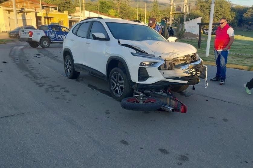 El hecho ocurrió en el ingreso al barrio Panamericano, sobre avenida San Francisco, donde una camioneta y una motocicleta colisionaron de frente en una zona con pendiente.